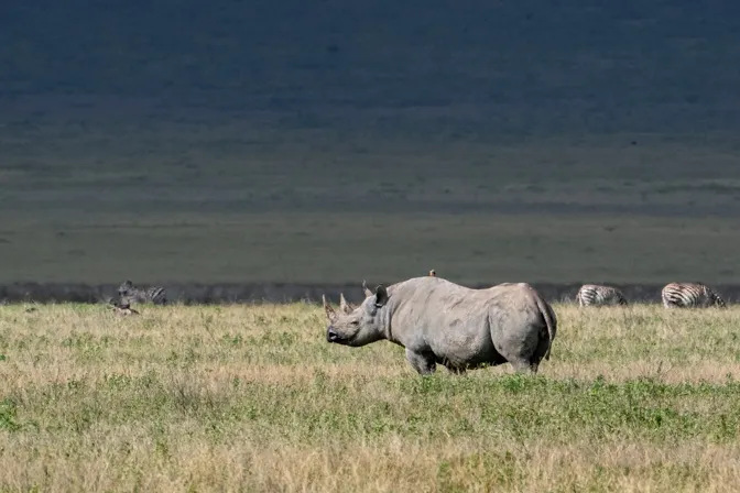 This photograph was taken in 2015 at the Ngorongoro National Park in Tanzania. Black Rhinos are very shy and seldom stay out in the open for long.