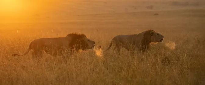 We were driving through Masai Mara around dawn one morning in August 2022 when we suddenly heard the roaring of lions. It was evident that it was the early morning roaring done by male lions to proclaim their territory and ward off intruders. In fact, we could hear another set of roars from male lions of another pride somewhere in the distance responding to these lions. As we watched, the coalition of males were walking through the tall grass, roaring. Since it was still dawn, the sunlight was illuminating each breath as the lions roared. You can almost hear the roar and feel the warm breath when you see this picture.