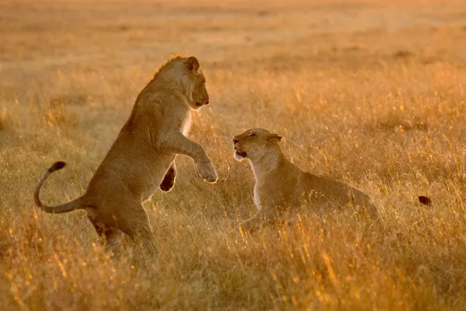 Female lions never lose their playfulness, but males older than 3 years rarely join in.