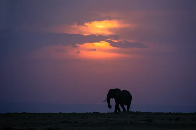 This photo of an African Elephant grazing with a backdrop of the setting sun was clicked in Masai Mara in 2016.