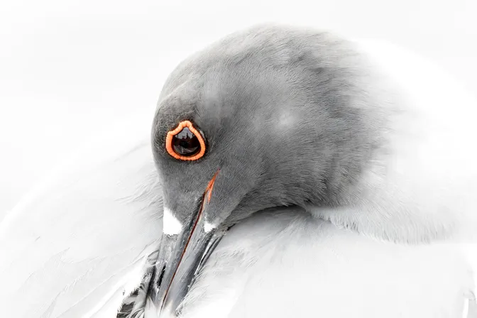 Swallow Tailed Gull changes colors of head and eyering when breeding