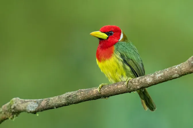 The Red-headed Barbet, scientifically known as Eubucco bourcierii, is a captivating bird species found in the cloud forests of Central and South America. With its vibrant plumage and unique characteristics, the Red-headed Barbet is a beautiful representative of the avian world. Red-headed Barbets inhabit the dense canopy of cloud forests, where they make their nests in tree cavities. They have a variety of vocalizations, including a series of loud, repetitive calls that can be heard echoing through the forest. Conservation efforts focused on preserving their cloud forest habitats and combatting deforestation are crucial for the survival of the Red-headed Barbet. By protecting their natural environments and promoting sustainable land management practices, we can help ensure the continued presence of this stunning barbet species in the forests of Central and South America.