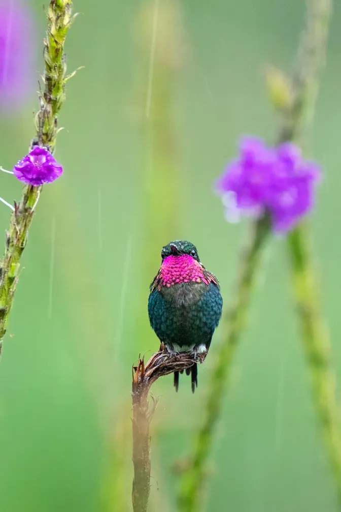 The Gorgeted Woodstar, scientifically known as Chaetocercus heliodor, is a small and dazzling hummingbird species found in the high-altitude regions of the Andes in South America. With its vibrant plumage and unique characteristics, the Gorgeted Woodstar is a fascinating and sought-after bird species. Gorgeted Woodstars primarily inhabit cloud forests and montane forests, often found near streams and waterfalls. They are known for their acrobatic displays, including courtship flights and aerial battles with other hummingbirds. Conservation efforts focused on protecting their fragile high-altitude habitats and combatting habitat loss are crucial for the survival of the Gorgeted Woodstar. By preserving their natural environments and promoting sustainable practices, we can help ensure the continued presence of this captivating hummingbird species in the Andean regions.