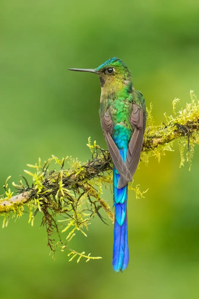 The violet-tailed sylph, a dazzling hummingbird species native to South America, boasts iridescent plumage and an astonishingly long tail, with some individuals having tails that are more than twice the length of their bodies.