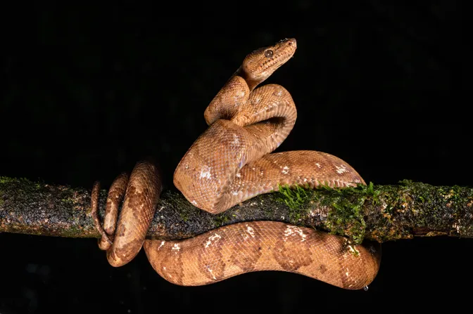 The Brazilian rainbow boa is named for its iridescent skin that refracts light and creates a rainbow-colored effect