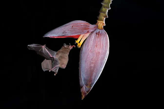 These bats have a distinctive appearance with a brownish or grayish fur coat and a relatively small body size compared to other bat species. However, their most remarkable feature is their long tongue, which is adapted for feeding on nectar from flowers. Pallas's Long-tongued Bats are nectarivores and are important pollinators for various plant species. They play a crucial role in the ecosystem by transferring pollen from one flower to another as they feed on nectar. This process facilitates the reproduction of many flowering plants