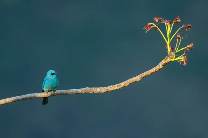 These small birds are very fast when they are hunting for insects and other food. However, they also like to perch on bare branches either to rest or to plan their next hunting strategy. It was when this Verditer Flycatcher chose to perch, that I clicked this picture in Sattal, Uttarakhand.
