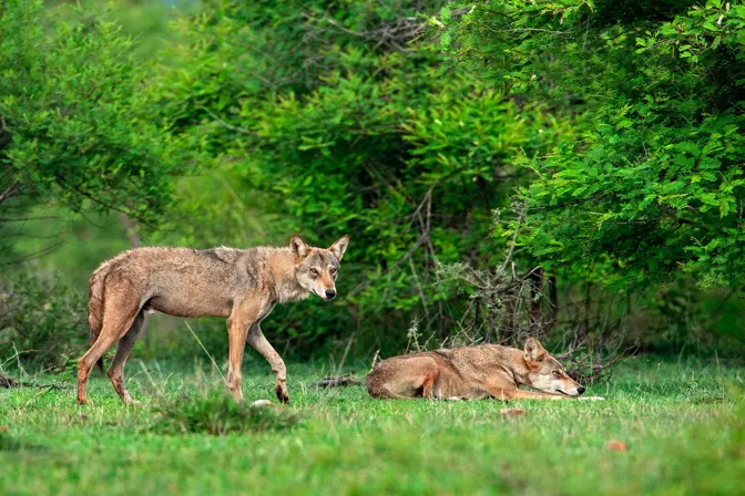 The Basur Kaval grassland is a mixed vegetation of tropical savannah and tropical scrub jungle in the Kadur Range of Chikkamagaluru Forest Division, Karnataka. The grassland was being used for grazing purposes. When I visited Basur Kaval, I was able to take some photos of these endangered Indian Wolves, including this photo of a breeding pair. We submitted photos to our seniors in the Forest Department and were instrumental in getting Basur Kaval declared as a conservation reserve. This is why I truly believe that when done ethically, wildlife photography is an excellent conservation tool.