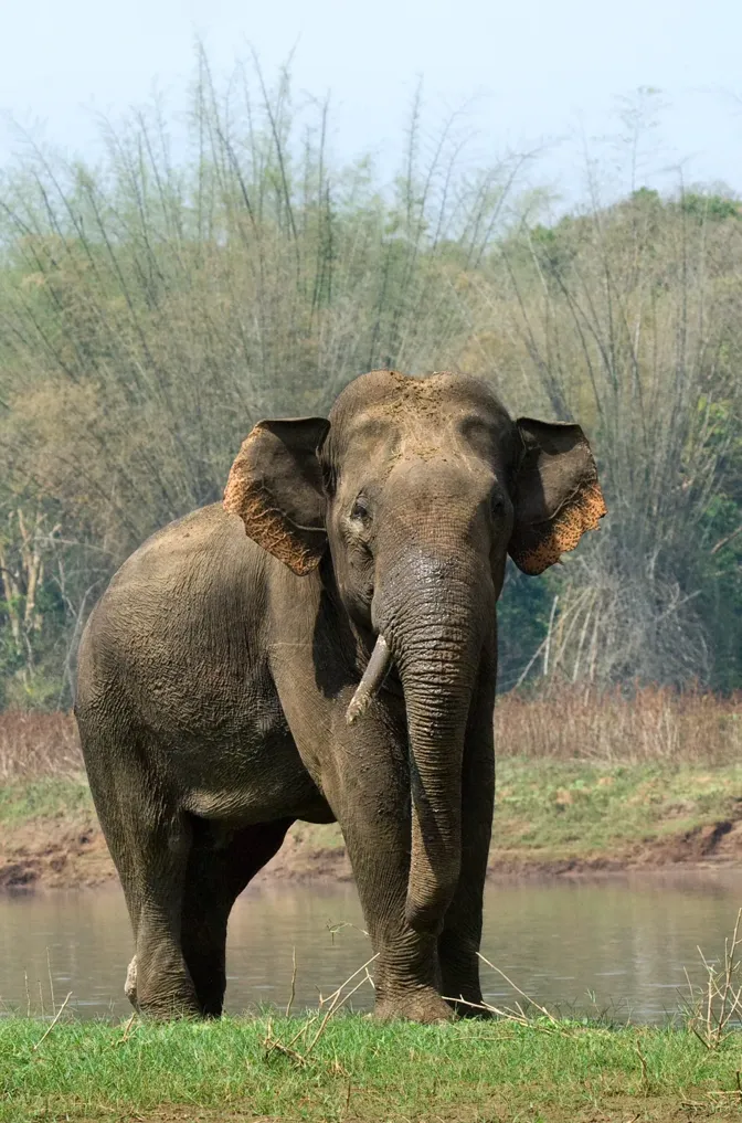 This huge male with a single tusk, emerged out of the Kabini River in Nagarhole National Park and posed for this picture. Elephants love spending time in waterbodies and this fellow certainly looked like he enjoyed his dip in the water.