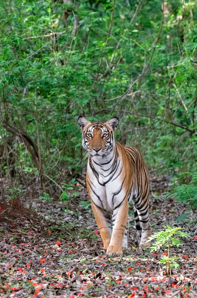 This image of the tigress was taken in May 2019 in Nagarahole National Park. We were in the middle of an uneventful safari when the spotted deer that were grazing peacefully suddenly started a series of alarm calls. This meant that there was a high chance of a predator on the move! We waited and watched silently and in 5 minutes, she emerged into the open. She seemed hesitant and anxious as she paused to look around before moving forward, giving us those extra seconds to click this picture.